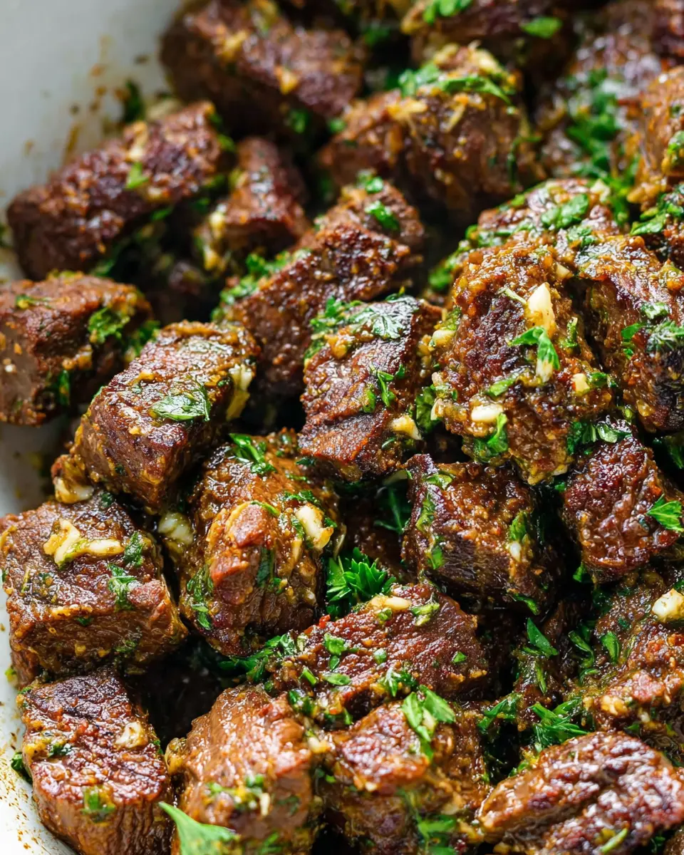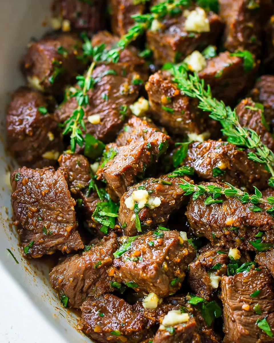 Stew Meat Steak Bites with Garlic, Herbs and Butter