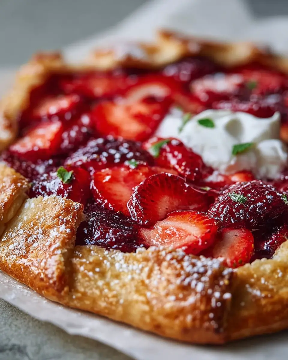 The Strawberry Ricotta Galette is not just a dessert; it’s an experience that combines a crisp pastry with creamy ricotta and vibrant strawberries. Perfect for gatherings or a cozy night in, this recipe is both simple and indulgent. Try it for yourself and let the flavors dance on your palate!