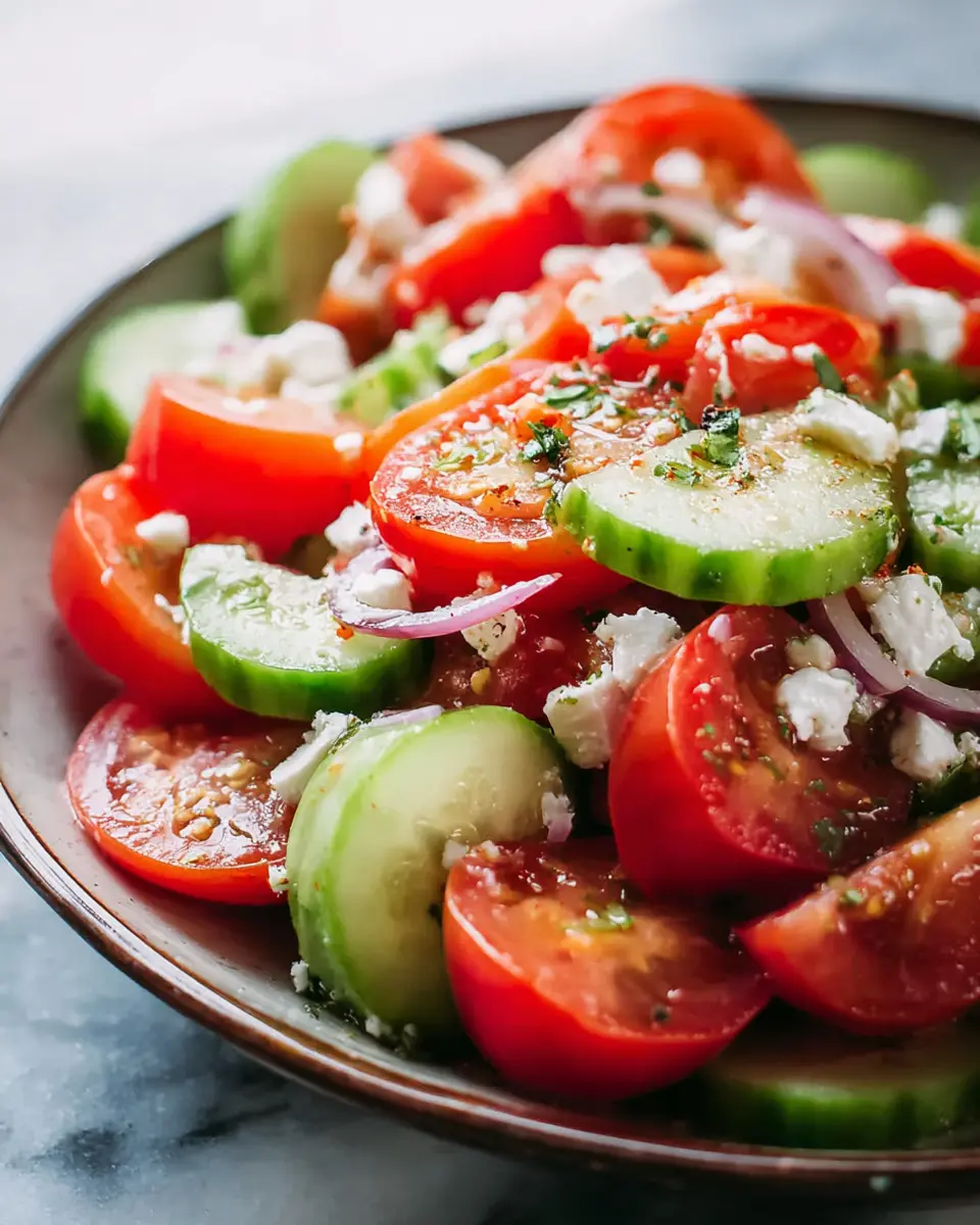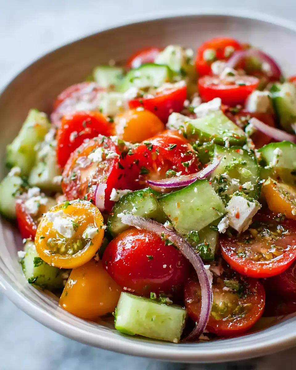 In conclusion, this Tomato Cucumber Feta Salad is a refreshing and nutritious option for any meal or gathering. With its vibrant colors and fresh ingredients, it not only delights the palate but also nourishes the body. Give it a try, and elevate your salad game in no time!