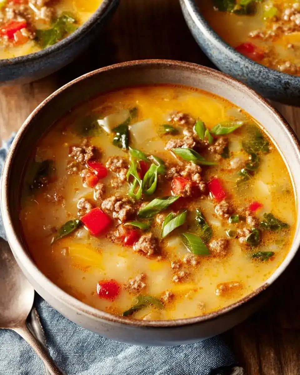 If you’re wanting to kick up the heat in your Turkey Cheeseburger Soup, consider adding some diced jalapeños or a splash of hot sauce. Another option is to use spicy cheese varieties like pepper jack in place of regular cheese. Gradually adjust the spice level to your preference to find that perfect balance!