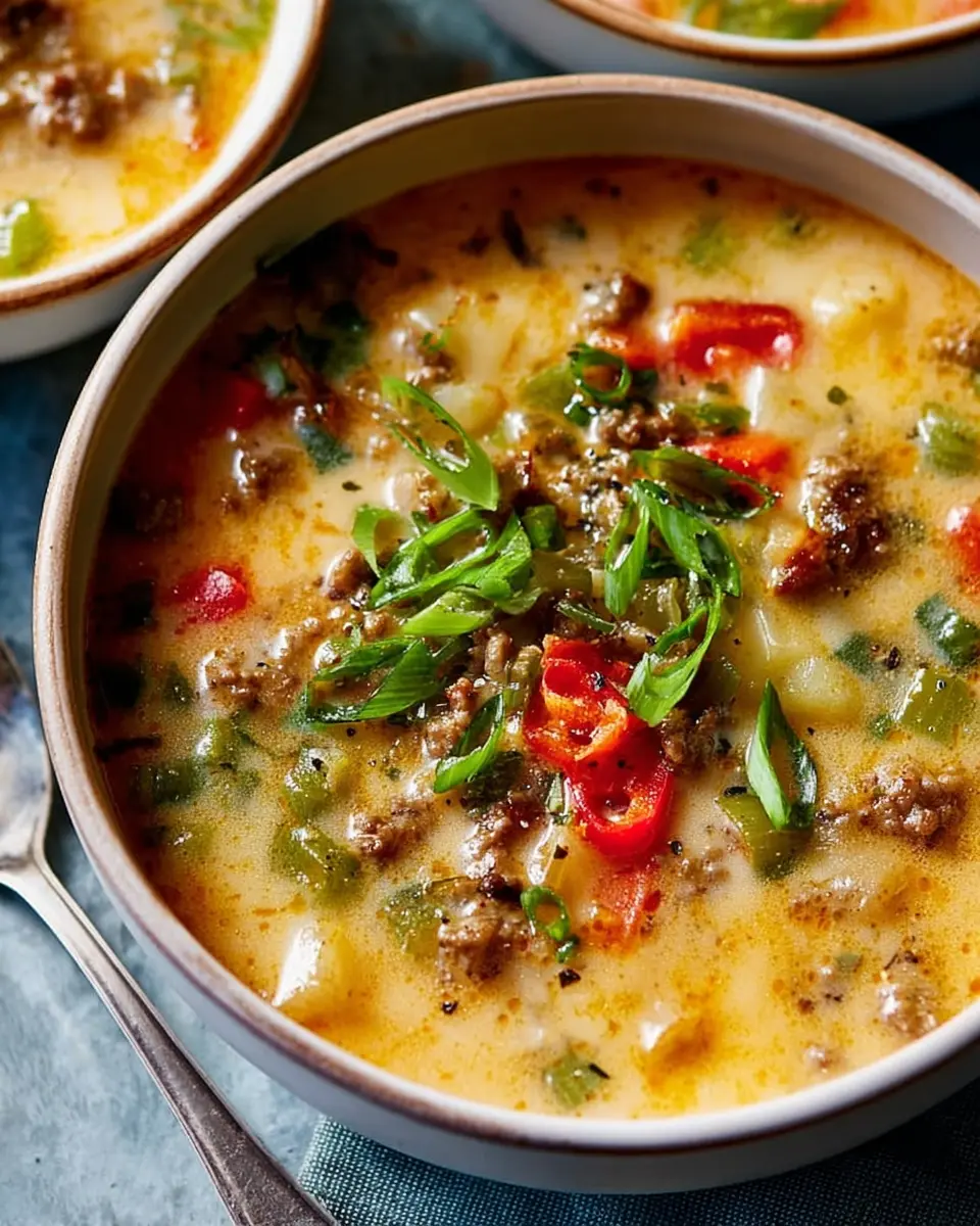 To take your Turkey Cheeseburger Soup to the next level, consider adding a splash of Worcestershire sauce or a dash of hot sauce for that extra kick. Fresh herbs, such as thyme or parsley, also enhance this comforting dish. Additionally, finishing the soup with a squeeze of fresh lemon juice brightens the flavors beautifully.
