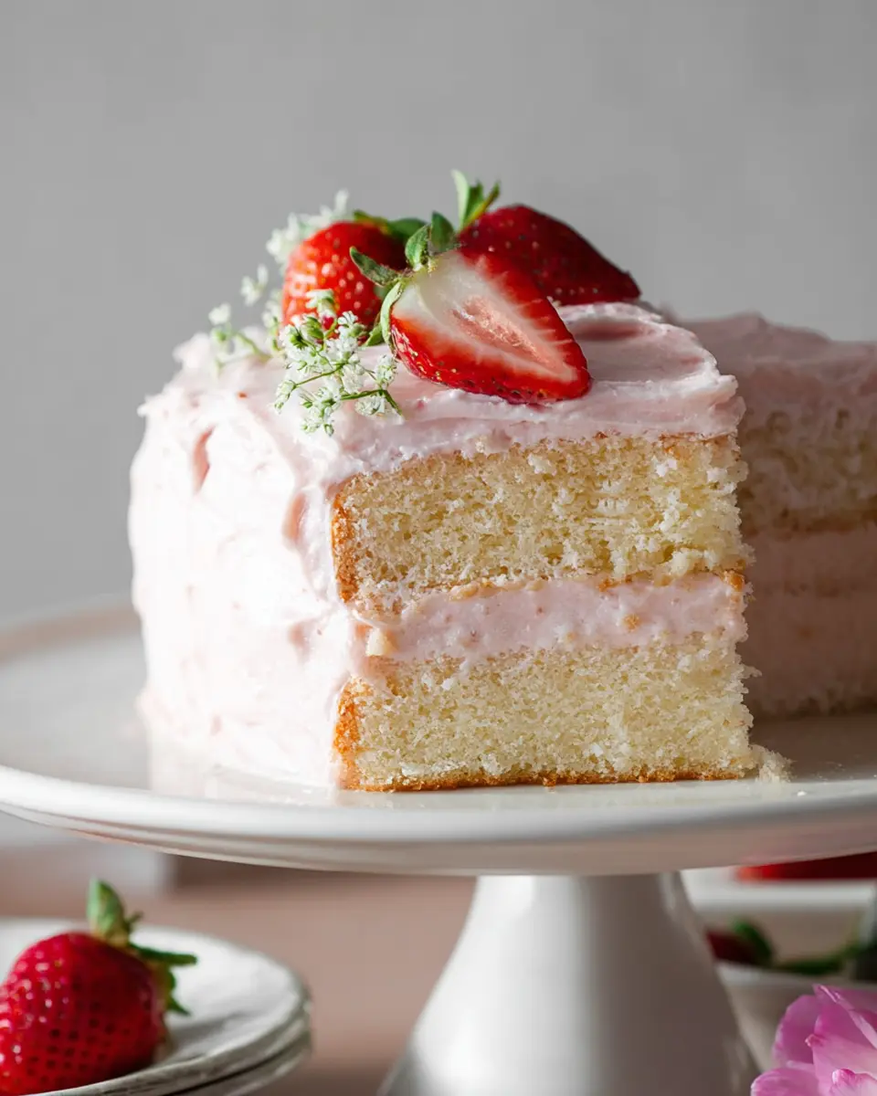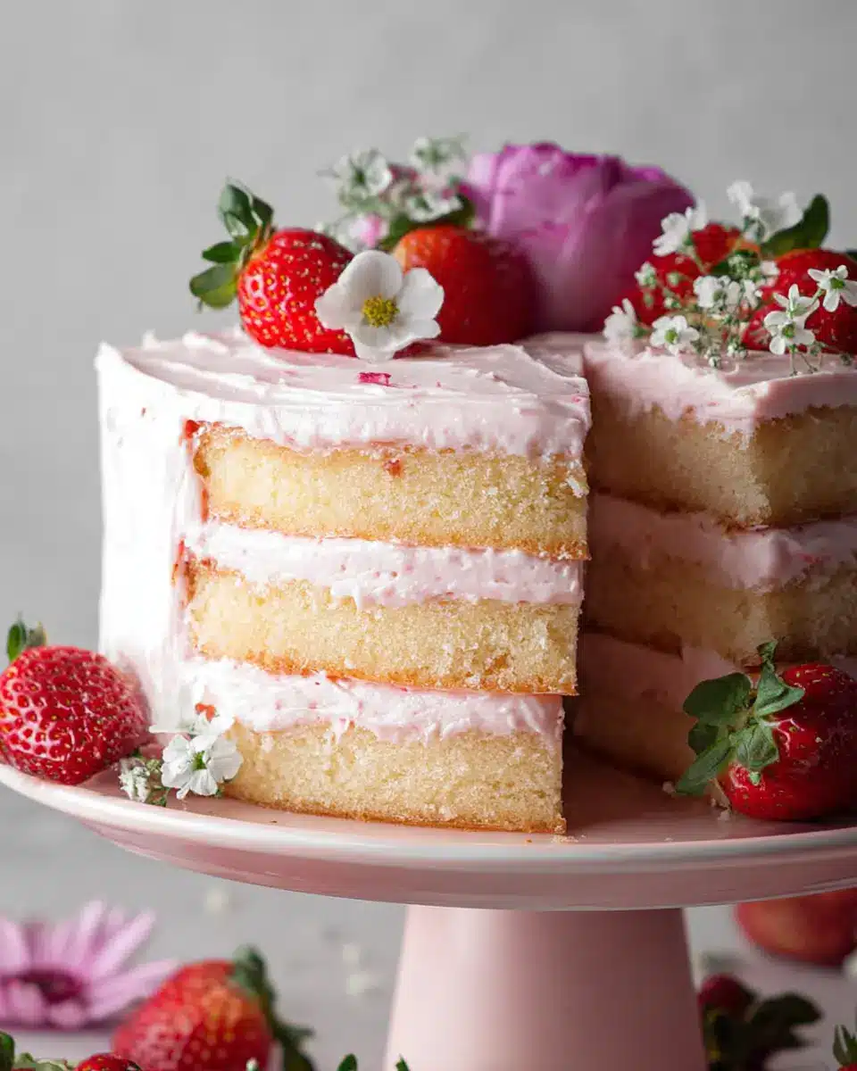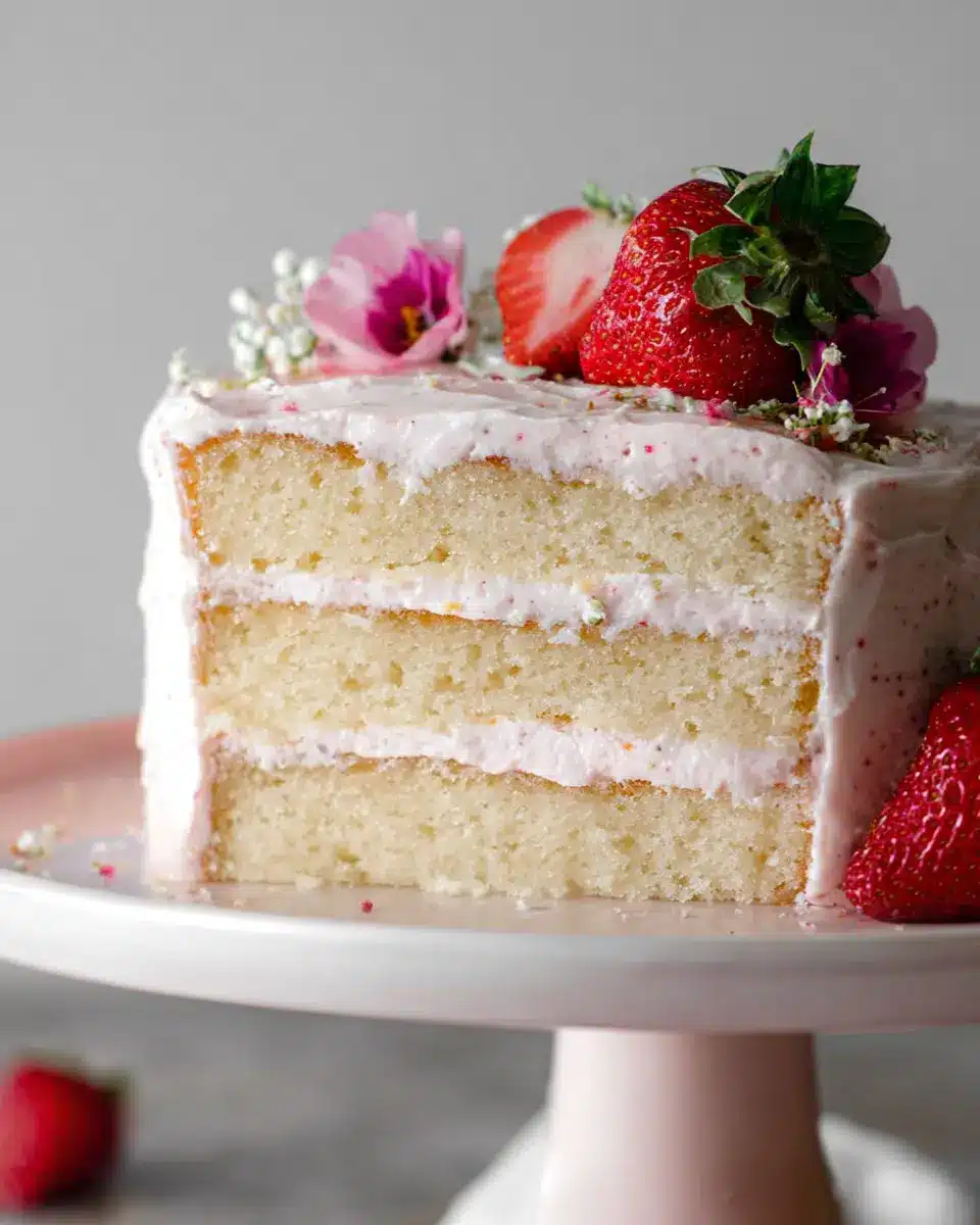 Vanilla Bean Cake with Strawberry Cream Cheese Frosting