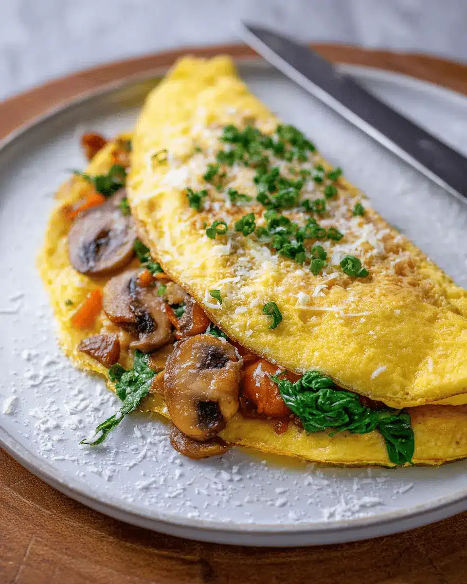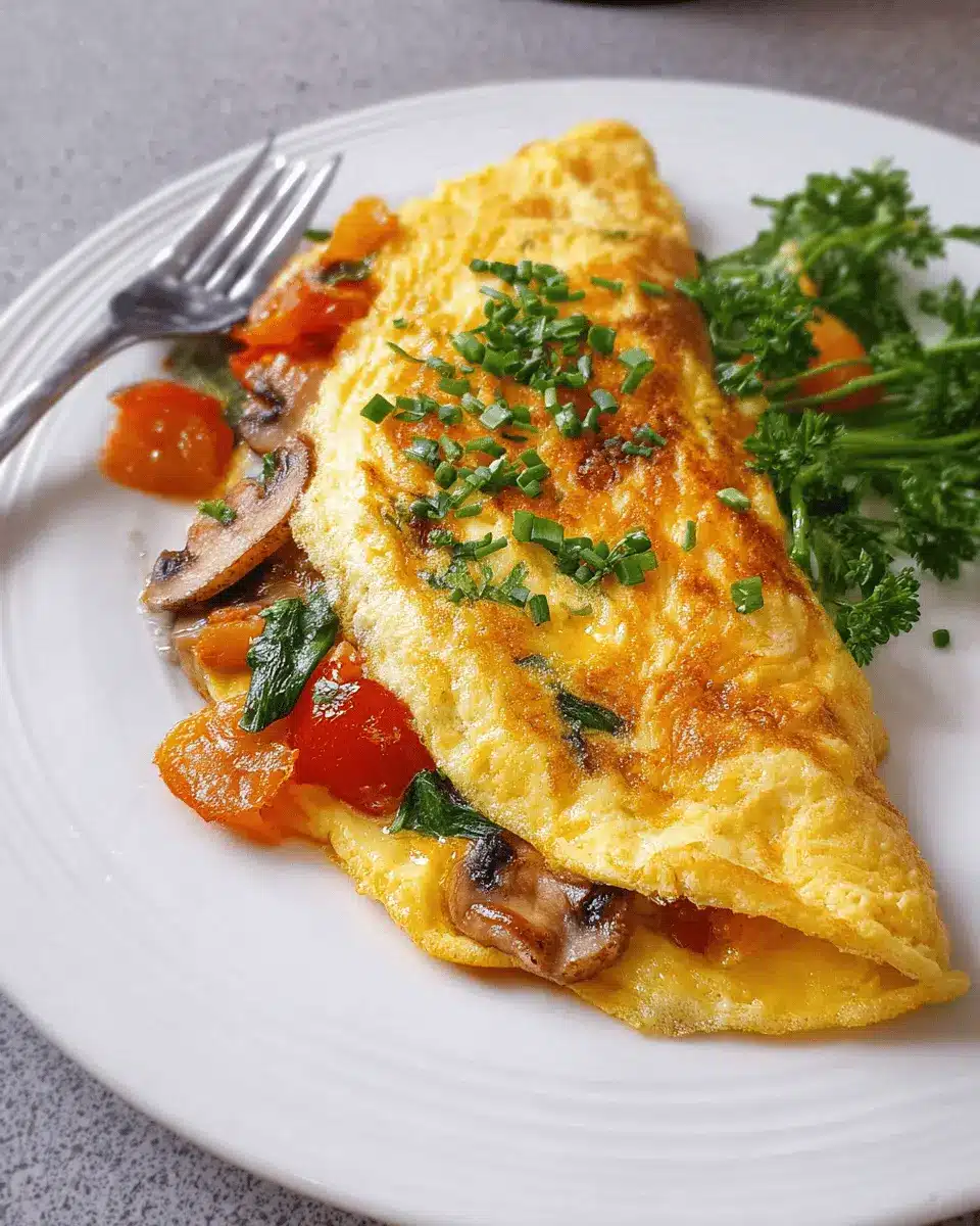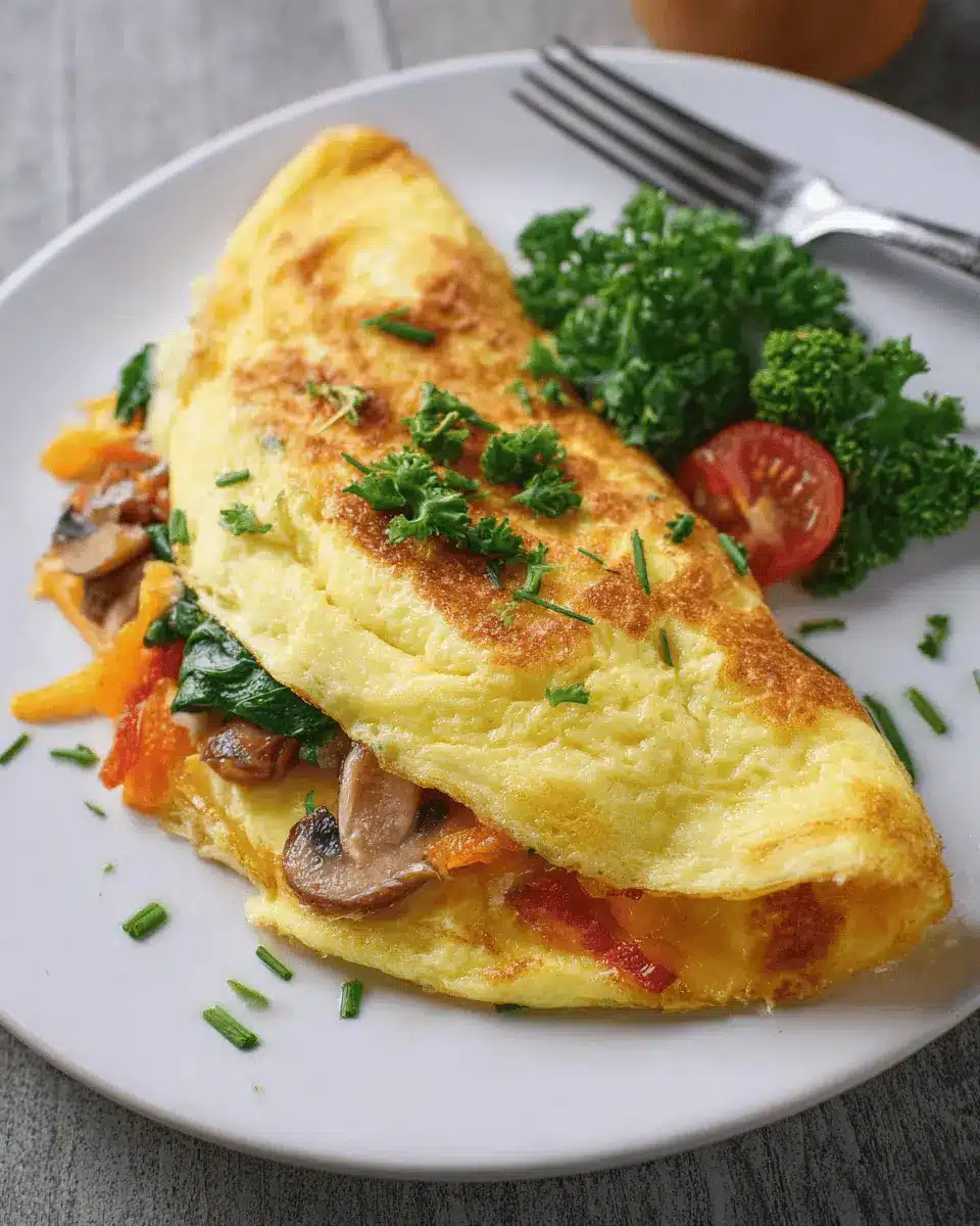 Finally, gently slide the omelet onto a plate, season with salt and pepper, and garnish with fresh parsley. Enjoy immediately for a breakfast that’s as nutritious as it is satisfying!