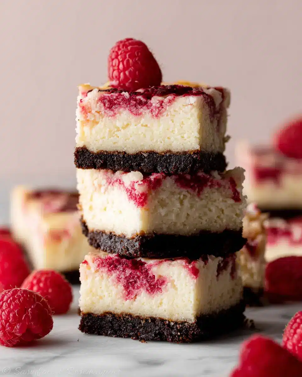 Absolutely! Frozen raspberries work wonderfully in these white chocolate raspberry cheesecake bars. Just make sure not to thaw them before using; this will help maintain their vibrant flavor and texture. Plus, frozen fruit can enhance the creaminess of your bars.