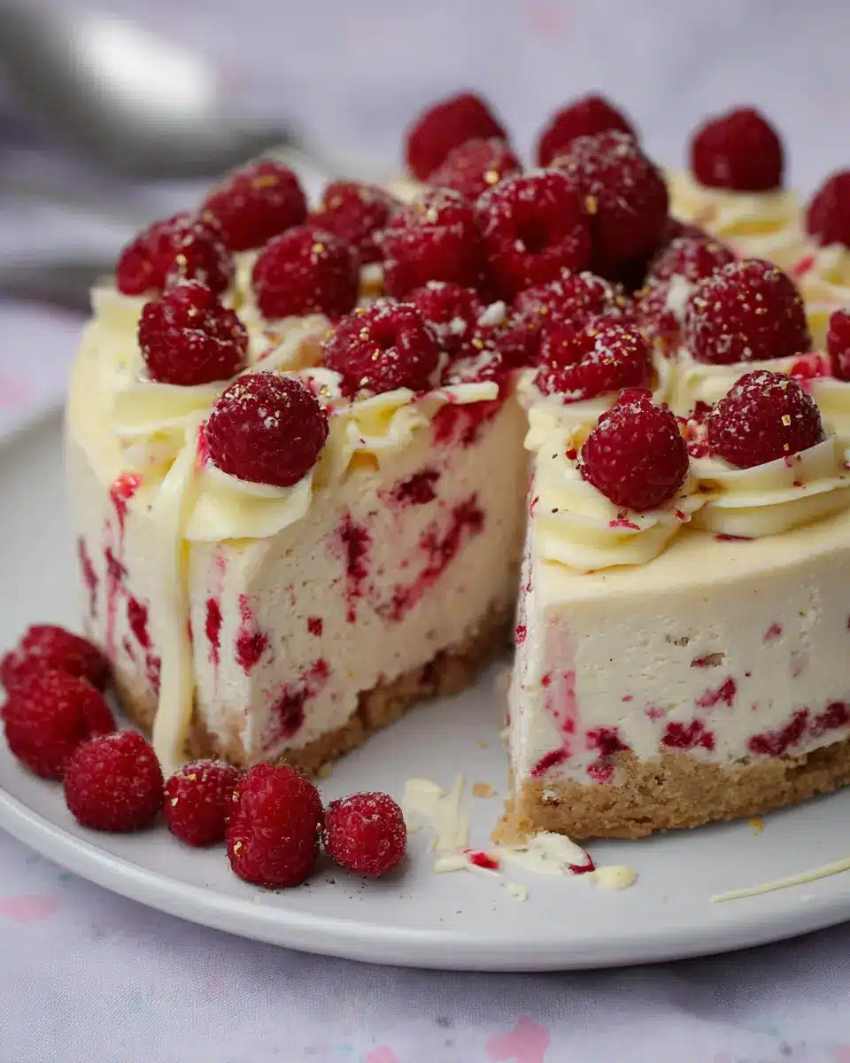 Indulging in a white chocolate raspberry cheesecake is a treat you won’t soon forget. With its creamy filling, buttery biscuit base, and fresh raspberries, this dessert perfectly balances sweetness and tartness. Impress your friends and family by serving this no-bake delight at your next gathering!